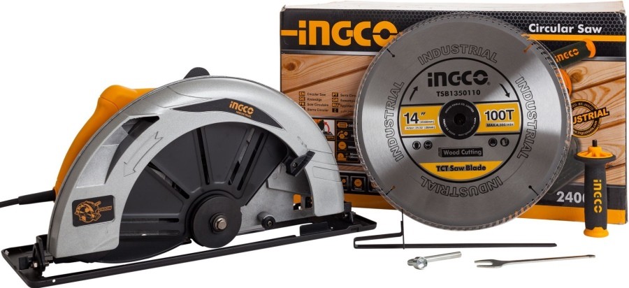 Циркулярная пила INGCO CS3501 INDUSTRIAL дисковая; Тип: переносная; Расположение двигателя: поперечно; Мощность (Вт): 2400; Максимальные обороты (об/мин): 3900; Размер шины / диска (мм): 350; Диаметр посадочного отверстия (мм): 20; Глубина пропила (мм): 130; Источник питания: электросеть (220 В);