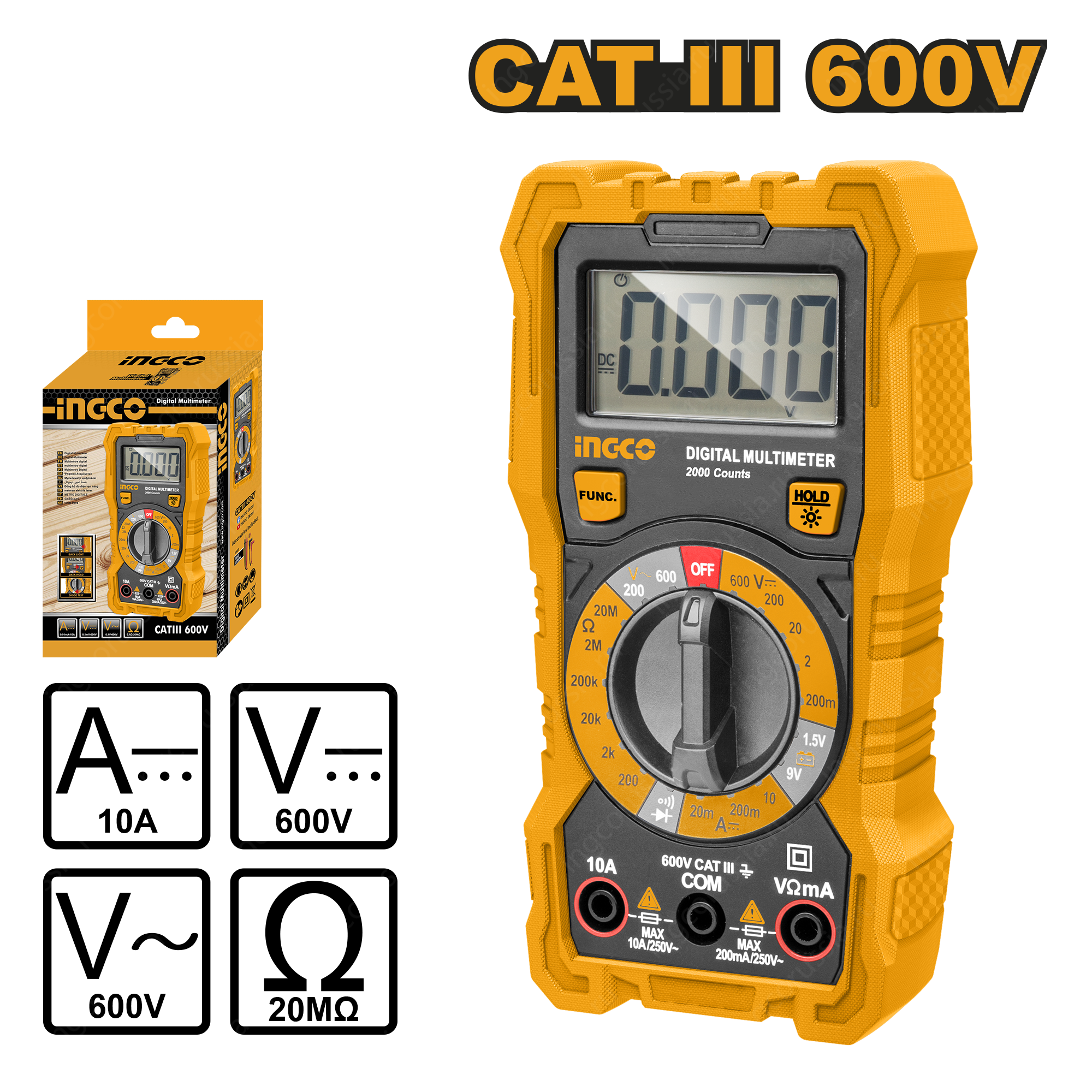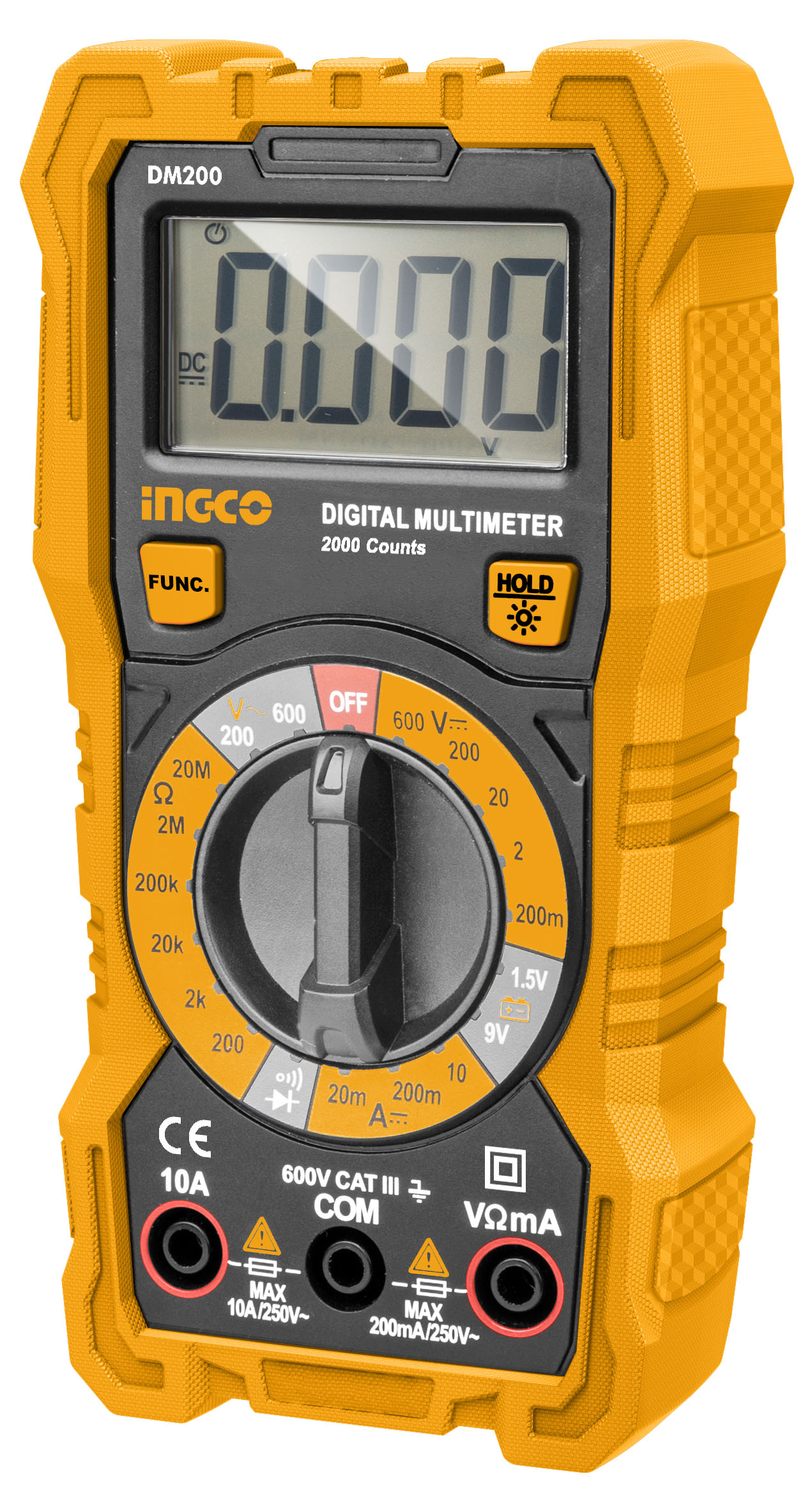 Цифровой мультиметр INGCO DM200 используется с целью измерения напряжения, силы постоянного тока и сопротивления. Имеет удобный переключатель, с помощью которого легко выбрать нужную функцию и диапазон.