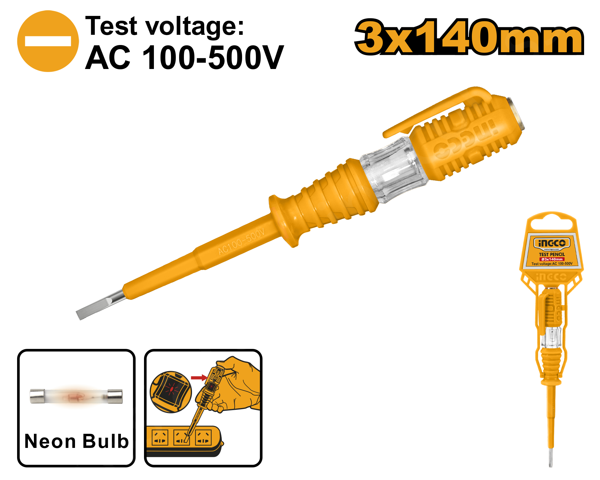 Индикаторная отвертка INGCO HSDT1408 - ручной инструмент, который используется электриками для поиска нуля и фазы в электросети.