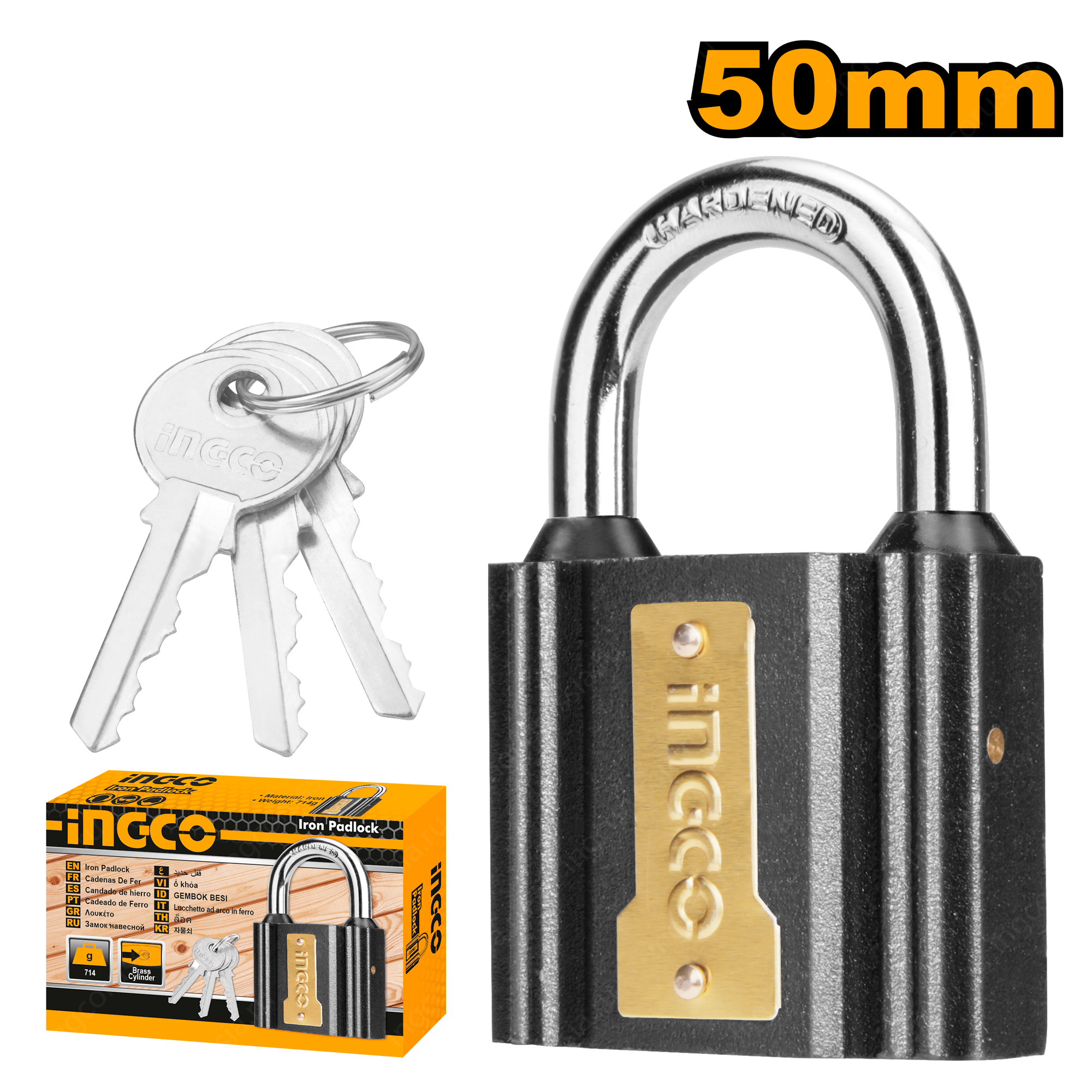 Замок навесной 50 мм INGCO DIPL0501. Материал замка - железо. Латунный механизм секретности. В комплекте 3 ключа.